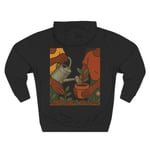 🌱 Unisex fit | Soft mid-weight cotton blend | Jet Black with red & earth-tone print